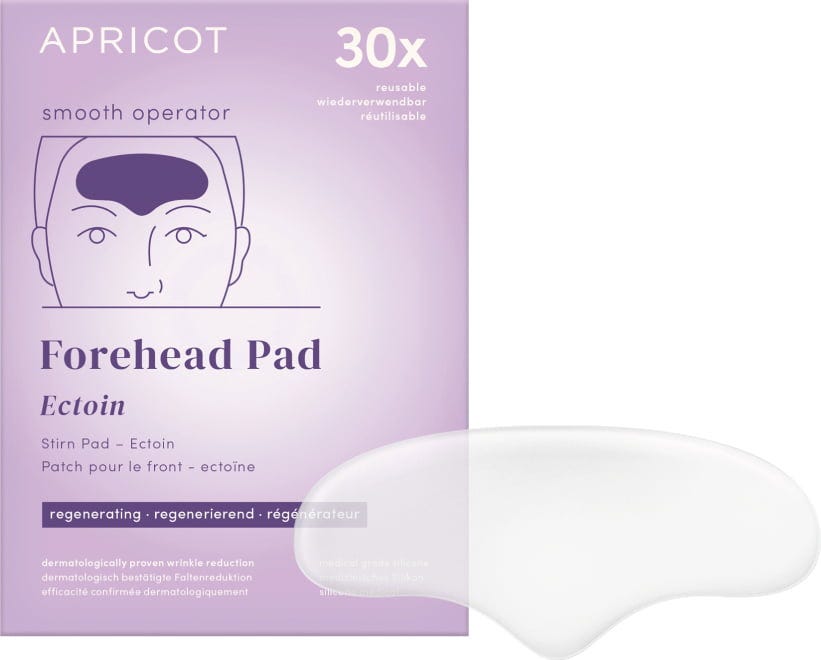 El parche para la frente Ectoin de APRICOT proporciona un cuidado intensivo y duradero de la piel de la zona de la frente con ectoína natural. Está fabricada con silicona médica y puede reutilizarse hasta 30 veces. La almohadilla también protege contra la luz azul. Las líneas de expresión también se alisan y reducen.