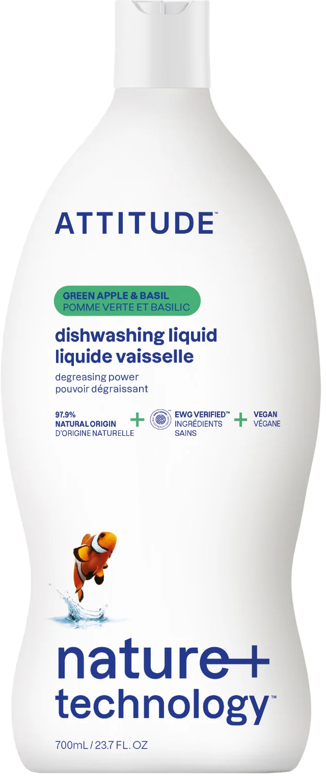ATTITUDE Detergente para Platos Líquido Manzana y Albahaca, 700 ml