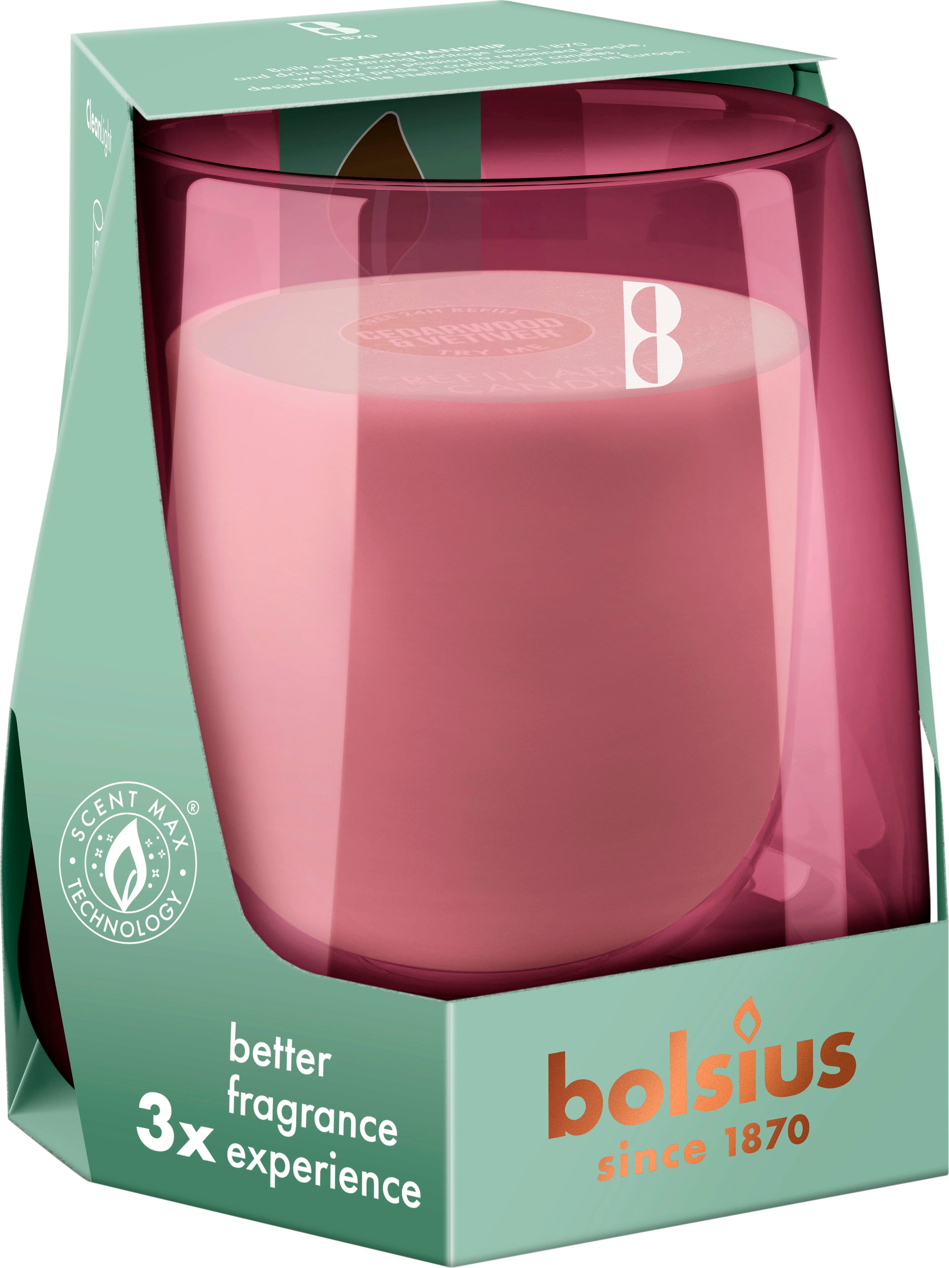 Con el kit de inicio CleanLight de Bolsius, recibirá un recipiente de vidrio soplado que incluye una vela, que podrá sustituir fácilmente por una vela de repuesto CleanLight adecuada una vez que se haya consumido. Gracias a la tecnología ScentMax, la vela proporciona una mejor experiencia aromática. La vela está diseñada para consumirse por completo sin dejar ni una gota de cera en el vaso. Arde hasta 24 horas. La vela está fabricada con un 50% de cera vegetal.