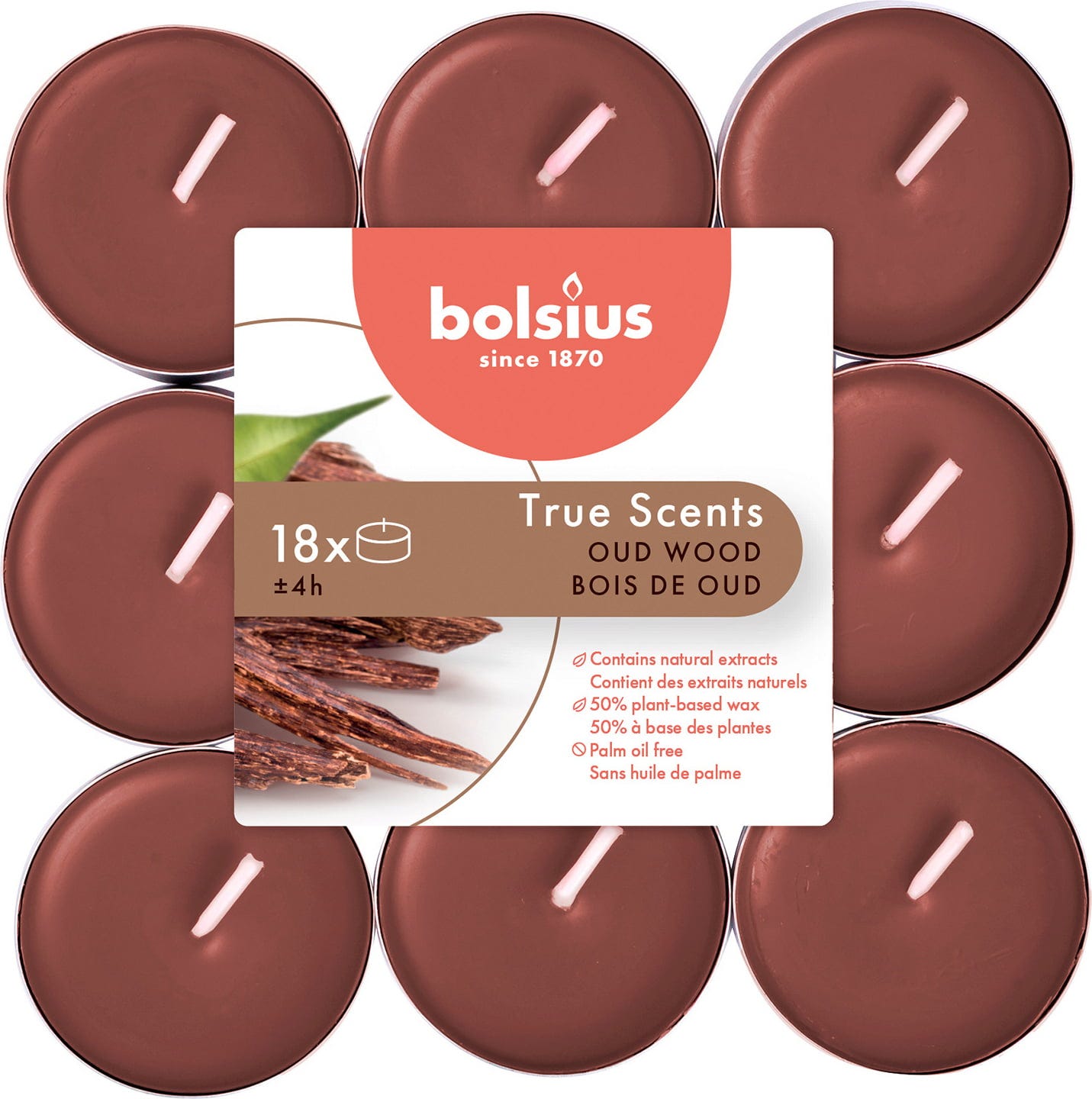 bolsius True Scents velas de té perfumadas 4h (18 uds.), Oud Wood