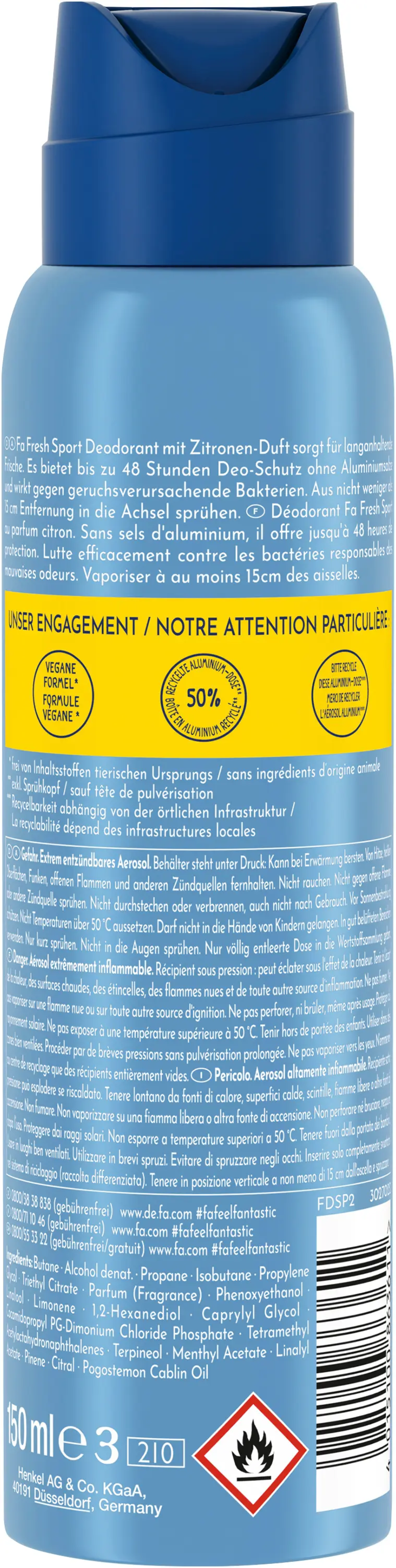 Fa Desodorante Spray FRESH Sport, 150 ml