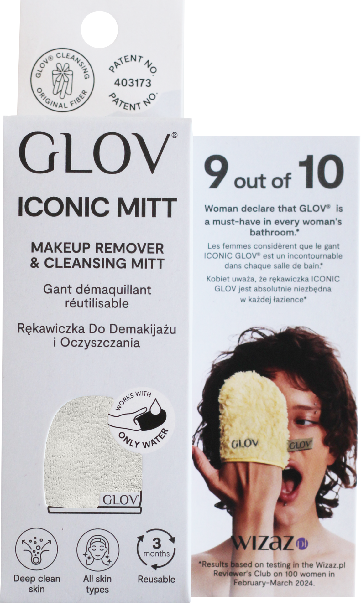Los guantes de limpieza ahorran tiempo, dinero y son aptos para equipaje y para viajes. El GLOV elimina el maquillaje y las partículas de suciedad utilizando una tecnología de fibra innovadora que solo requiere la adición de agua. Su suave acción exfoliante estimula la microcirculación y preserva el nivel de pH natural de la piel.