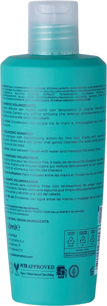 El champú volumen de Gyada Cosmetics está pensado para dar cuerpo y espesor al cabello frágil y fino, con tendencia a apelmazarse. Ofrece un lavado delicado que deja el pelo sin pesadez, y resulta adecuado tanto para cuero cabelludo graso como seco. Acción voluminizadora gracias al contenido en extracto de lúpulo que, en combinación con caléndula y aloe vera, aporta mayor elasticidad y duración de sus resultados.