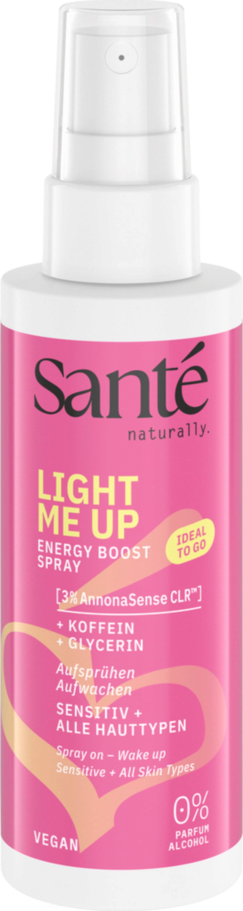 Con el Spray energizante Light Me Up, tienes el energizante perfecto para sobre la marcha o para empezar el día. Su fórmula con cafeína, AnnonaSense™ y glicerina aporta frescor, hidratación y vitalidad. Al mismo tiempo, el producto deja la piel flexible y con un delicado brillo.